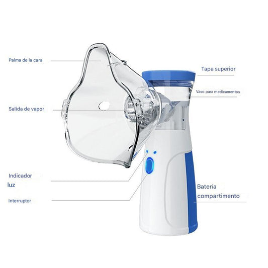 Oxy Pure: Nebulizador Portátil Ultrasonico Recargable con Auto-Limpieza para Adultos y Niños