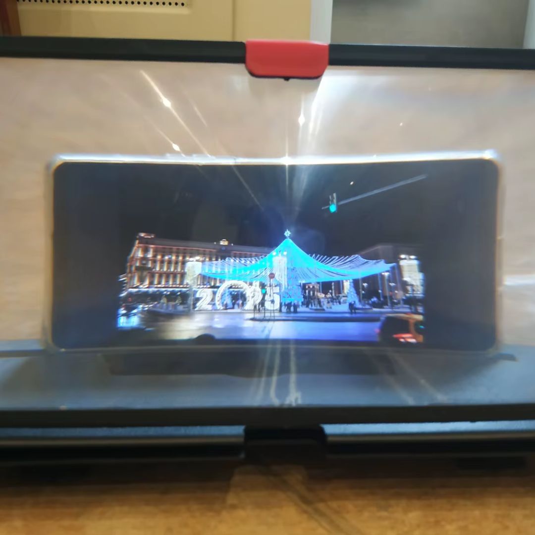 2️⃣ Ubica tu celular — Coloca tu teléfono en el soporte trasero, alineado con la lupa.