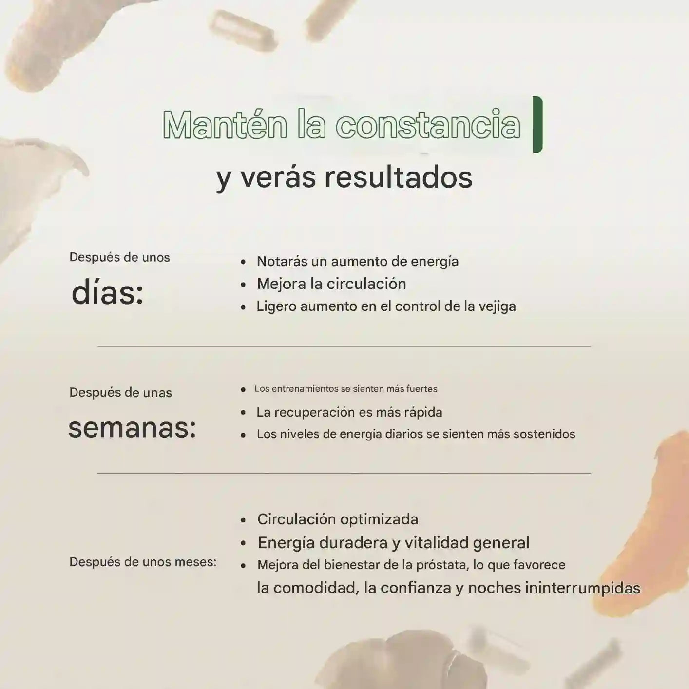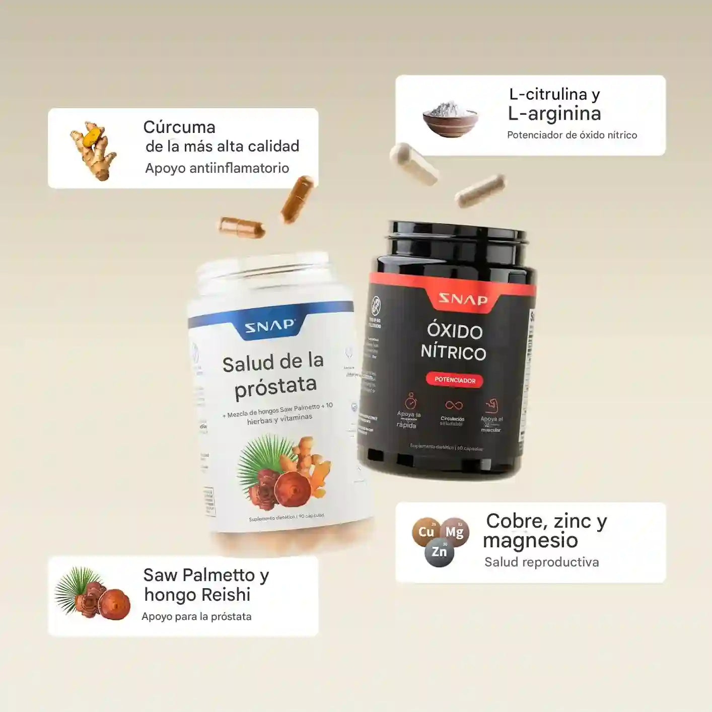 Cada componente acompaña áreas clave del bienestar masculino de forma complementaria.