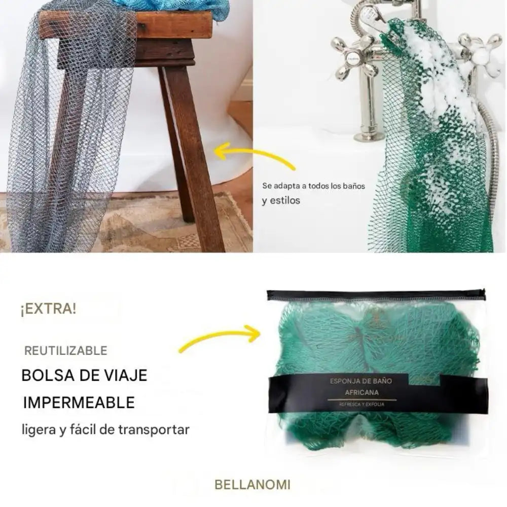 Llega a las zonas más difíciles de la espalda donde otras esponjas no llegan. Para hacer una limpieza completa y profunda con la técnica del entrelazado Africano.