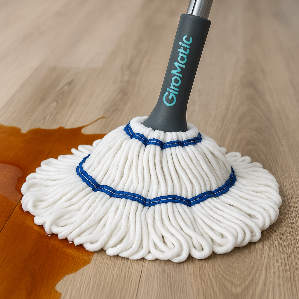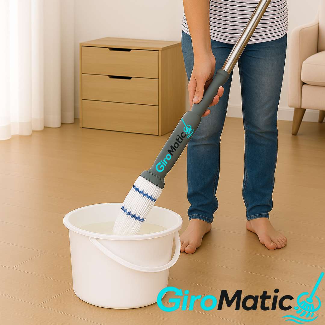 Olvídate de escurrir el trapero con las manos, con GiroMatic sólo ajusta el mango, empuja hacia abajo para exprimir el exceso de agua.